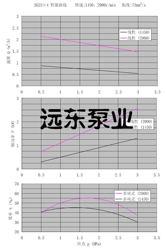 | 3GR25*4三螺杆(gǎn)泵轉速(su)1450,2900r/min,粘度75cst性(xing)能曲線(xiàn)圖 | ||||||