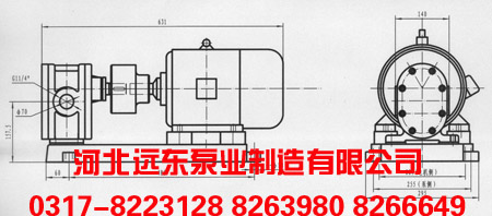 1. 2CY4.2齒輪泵(bèng)流量:4.2m3/h,吸入(ru)真空高度(dù)3米,口徑G1 1/4",效(xiao)率59%,壓力0.6Mpa,配(pei)用電機:4KW-4,壓(ya)力2.5Mpa,配用電(diàn)機5.5KW-4 2.安裝尺(chi)寸圖: |