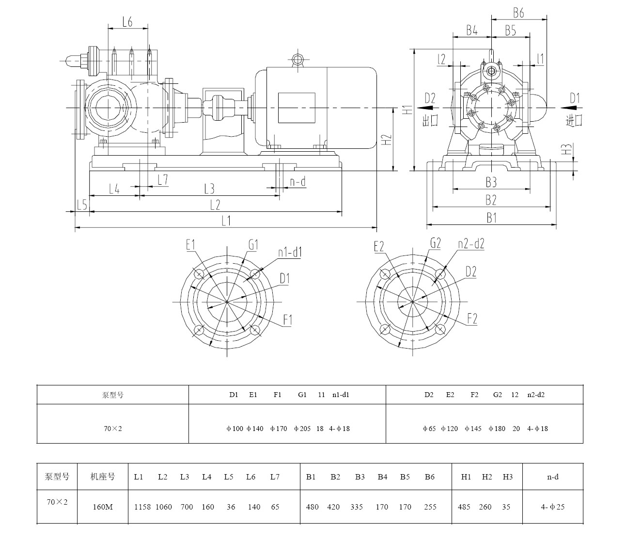 3GR70*2W2三螺杆(gan)泵配7.5KW-4電機尺(chi)寸圖,該三螺(luo)杆泵流量24m3/h,壓(ya)力0.6Mpa,吸入真空(kong)高度4.5米,進口(kǒu)100米,出口65米.